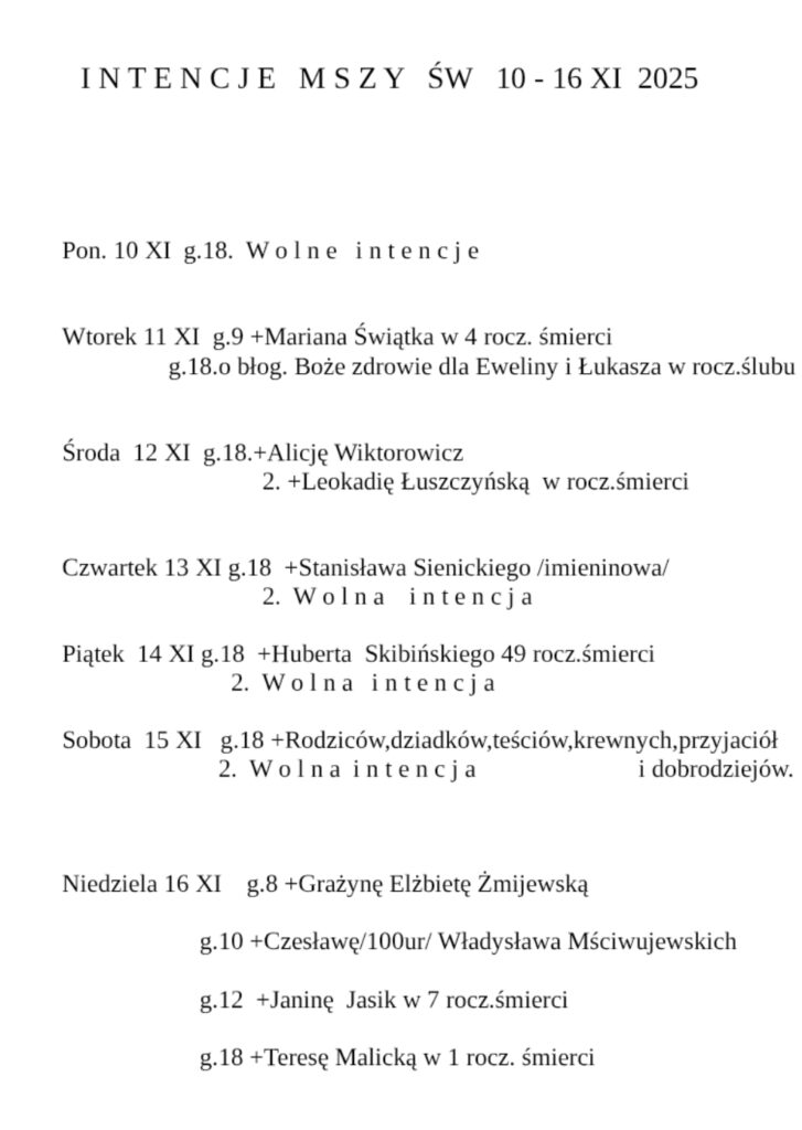 Intencje 10-16 listopada 2025