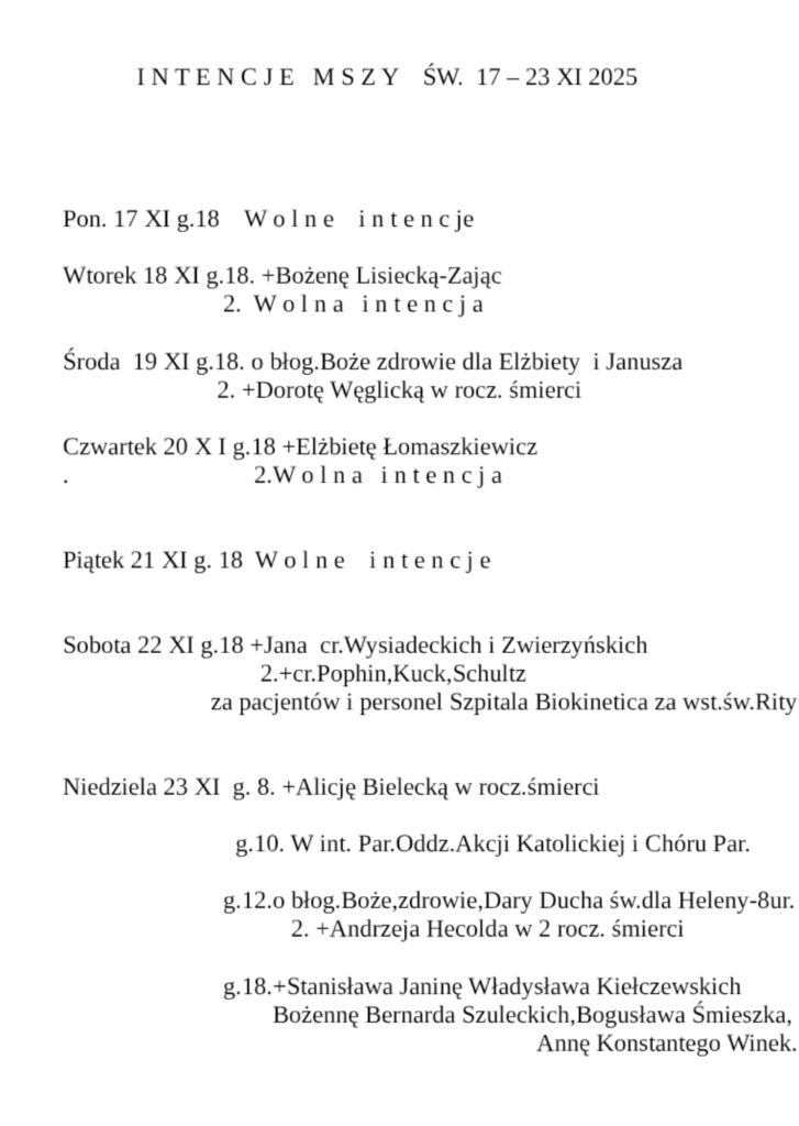 • Intencje 10-16 listopada 2025